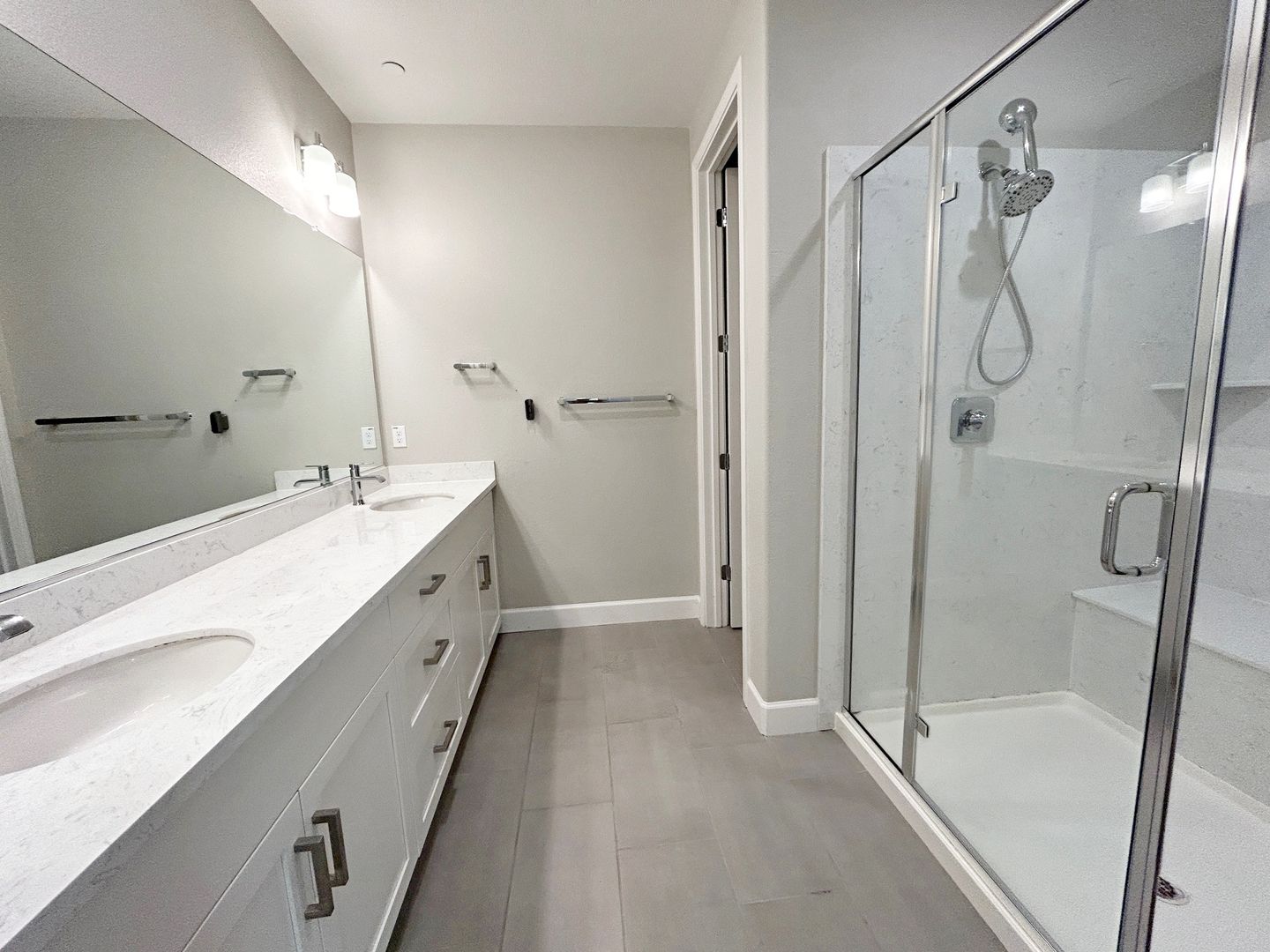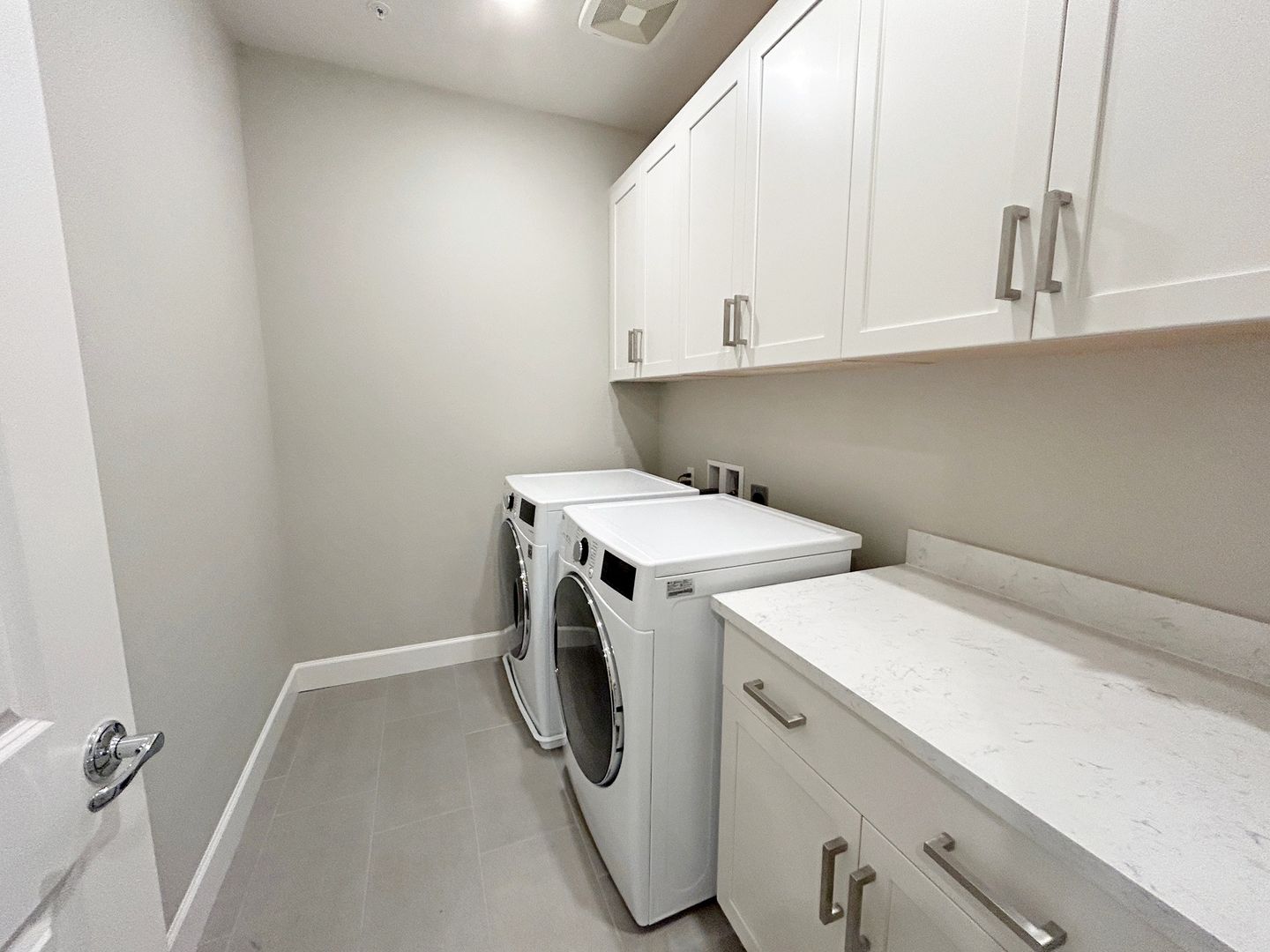 On the third floor, you’ll find two bedroom suites, including a large primary suite with a walk-in closet, dual sinks, and a walk-in shower. The second suite also features a walk-in closet and a shower-over-tub. A separate laundry room with ample cabinetry is conveniently located on this level.